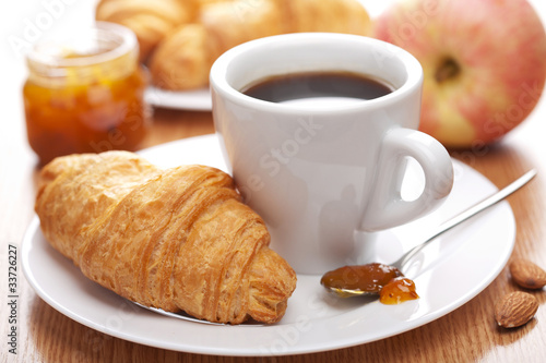 croissant, breakfast, apple, bake, bakery, beverage, bread, closeup, hot drink, confiture, cookery, cup, delicious, dessert, drink, espresso, food, french, fresh, health, healthy, jam, jelly, marmalade, natural, nourishment, pastry, snack, sweet, traditional, white