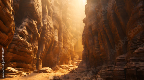 Breathtaking canyon bathed in golden sunlight, its towering walls etched with the intricate patterns of time. Ai Generated.NO.02