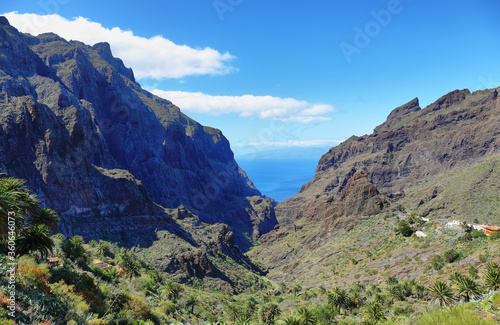 tenerife, view, spain, scenic, scenery, rock, village, europa, canary, volcanic, mountain, spanish, peak, palm, ocean, high, tree, island, highland, vegetation, blue, vale, sky, destination, vacation, travel, panorama, green, landscape, nature, tour tourism, canyon, hiking, beautiful, atlantic, breathtaking, european, lost, sea, secluded, mountain, palm, canarian, tropical, hill