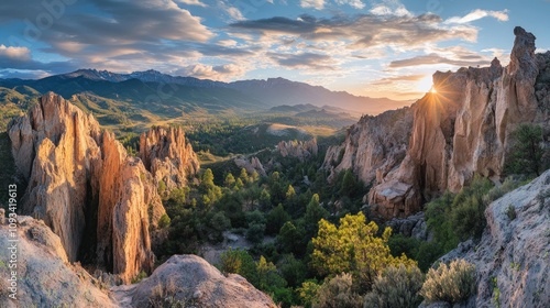 breathtaking, panorama, rugged, mountain, peak, sunset, dramatic, rock, formation, lush, green, vale, colourful, sky, landscape, nature, scenery, serene, scenic, tranquil, majestic, vibrant, twilight, no people