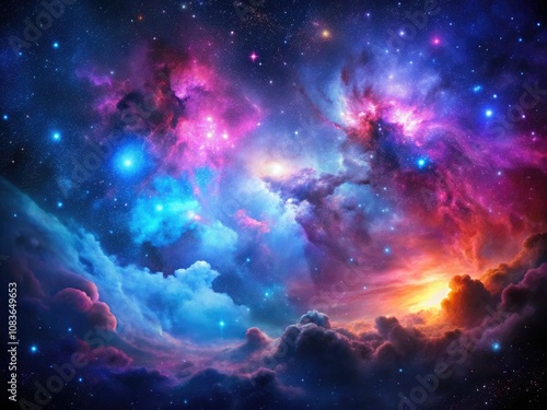 Breathtaking Silhouette of a Colorful Interstellar Nebula with Stars and Cosmic Dust