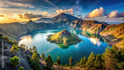 crater lake, lombok, indonesia, volcano, summit, landscape, nature, travel, scenery, mountain, water, blue, tropical, hiking, adventure, geography, park, wilderness, beautiful, serene, calm, environment, ecosystem, volcanic, scenic view, natural beauty, sky, cloud, flora, fauna, calmness, pristine, exploration, tour tourism, panoramic, vista, remote, breathtaking, highland, dramatic, peaceful, clear, trekking, natural wonder, stunning