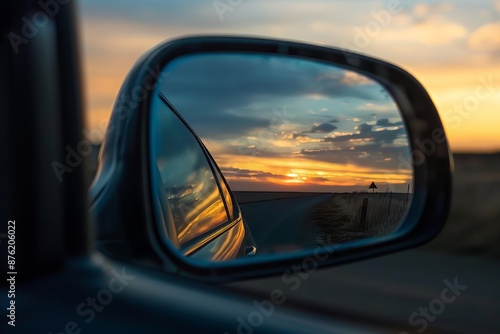 sunset, car, mirror, evening, dusk, sky, cloud, orange, yellow, blue, purple, pink, travel, road, journey, destination, freedom, adventure, exploration, wanderlust, nature, landscape, beautiful, scenery, picturesque, stunning, amazing, breathtaking, mesmerizing, enchanting, captivating, delightful, pleasant, enjoyable, relaxing, peaceful, serene, tranquil, calm, soothing, gentle, quiet, still, silent, undisturbed, untroubled, harmonious