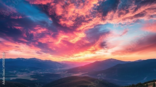 breathtaking, sunset, illuminating, mountain, kaleidoscope, colours, sky, dynamic, swirling, cloud, stunning, landscape, scene, nature, calmness, evening, twilight, picturesque, scenic, visual, beauty, photo, no people