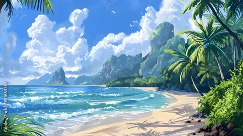beach, ocean, sea, wave, palm tree, tropical, paradise, landscape, nature, island, scenery, summer, sun, sky, cloud, sand, shore, coast, bay, seascape, coastline, tour tourism, vacation, travel, get-away, relax, calm, peaceful, idylli, exotic, serene, picturesque, tranquil, turquoise, lush, verdant, pristine, secluded, unspoiled