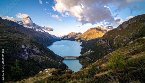 lake, mountain, zermatt, switzerland, dam, landscape, nature, cloud, sky, water, reservoir, alps, scenic, peak, travel, vale, europa, tour tourism, view, hill, terrain, panorama, high, cloudscape, destination, beautiful, environment, sunlight, summer, nobody, tranquil, altitude, idylli, majestic, rock, wilderness, climate, formation, vegetation