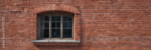 Brick wall with convex mortar and old windows, brickwork, masonry