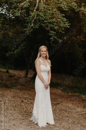 dress, bride, blond, natural light, wedding, wear, veil, tree, simple, portrait, outdoors, lace, gown, fashion, caucasian, white, woman, girl, female, person, people, adult, adult, 20s, grown-up