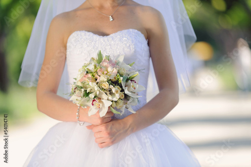 bride, wedding, flower, hand, bouquet, white, orchid, rose, sun, veil, bracelet, sunlight, park, nail, human, ring, dress, holding, 1, love, woman, engagement, part, ceremony, only, caucasian, coloured, sharpened, beauty, floral, view, day, life, contract, celebration, married, female, foreground, union, stem, colours, image, leaf, oneness, bridal, event, creativity, high, standing