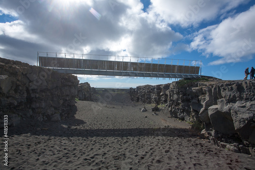 iceland, bridge, europa, footbridge, fracture, geologic, icelandic, landmark, landscape, north america, peninsula, tectonic, view