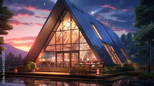 Bridge over river. AI generated art illustration.