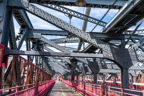 bridge, construction, steel, metal, architecture, building, structure, industrial, industry, city, sky, iron, old, blue, urban, road, design, travel, new, transport, williamsburg, new york city, new york city, brooklyn, connection
