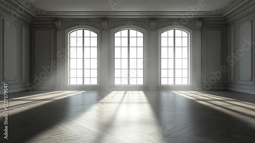 Bright and Spacious Empty Room with Elegant Windows and Shadows