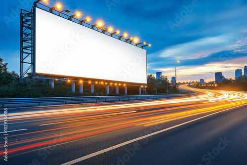billboard, highway, advertising, rush hour, car, traffic, illuminated, large, modern, city landscape, urban, customizable, structure, sleek, commercial, marketing, signage