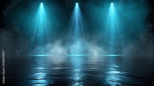 Bright blue rays illuminate a dark underwater scene with a texture of motion
