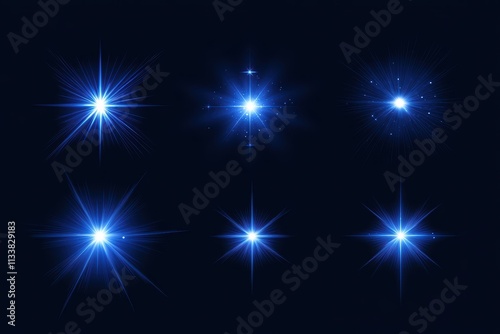Bright Blue Starburst Effects on Dark Background for Creative Use
