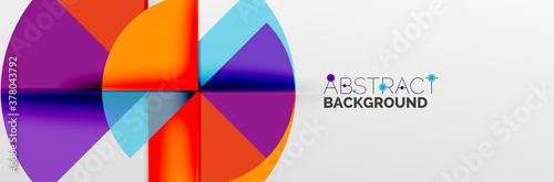 Bright color circles, abstract round shapes and triangles composition with shadow effects. Vector modern geometric design template