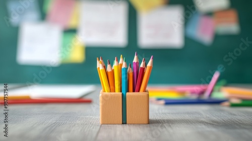 Bright Colored Pencils in Classroom Setting