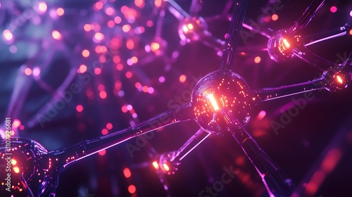 bright, digital, network, glowing, node, vibrant, datum, flow, connection