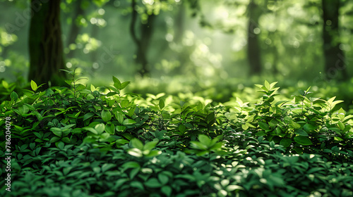 Bright Green Foliage Illuminated by Sunlight in a Forest Setting, Creating a Fresh and Inviting Environment