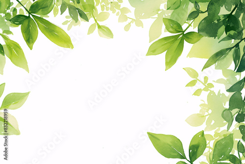 Bright green leaves forming a frame around a white background with a fresh and natural feel