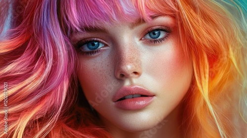 bright, haired, woman, young, adult, female, coloured, vibrant, fashion, model, beauty, inspiration, coiffure, idea, trend, youthful, energy, style, guide, make-up