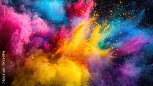 Bright Holi paint powder clouds erupt into a burst of color, capturing the vibrant spirit of celebration.