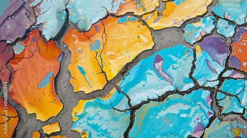 bright, vibrant, floor, pop, crack, burst, colours, adding, unexpected, element, dull, damaged, surface, wallpaper, background, texture, overlay, abstract, material