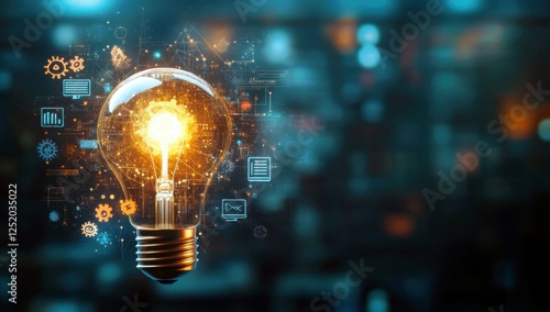 Bright Idea Symbolizing Innovation and Creativity with Light Bulb and Digital Elements in Modern Technology Concept