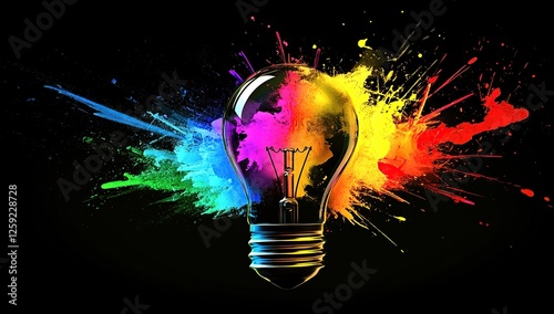 light bulb, creativity, innovation, idea, colourful, paint, splash, explosion, inspiration, design, imagination, artistic, vibrant, colours, energy, bright, graphic, abstract, visual, concept, artwork, illustration, thinking, mind, invention, solution, discovery, progress, development, technology, future, potential, growth, success, achievement, opportunity, vision, perspective, insight, intelligence, wisdom, cognition, learning, life events, skill, talent, passion, enthusiasm, determination