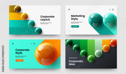 Bright journal cover design vector concept set. Vivid 3D balls booklet illustration bundle.