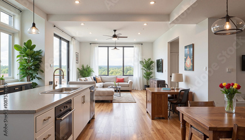 real estate, living room, home decor, house for sale, homeownership, residential house, kitchen, interior, room, home, table, furniture, design, house, luxury, chair, contemporary, architecture, nobody, living, apartment, floor, new, indoor, window, decor, dining, chair, wood, light