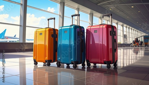 baggage, aerodrome, suitcase, travel, trip, journey, baggage, departure, flight, terminal, vacation, holiday maker, packing, passenger, modern, colourful, tour tourism, adventure, international, gate, waiting, holiday, transport, jet, destination, plane, airfield, global, wanderlust, explore, voyage, transit, check, bag, vibrant, business, nobody