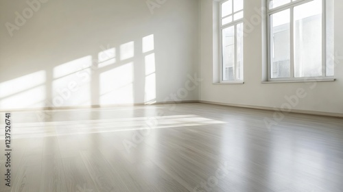 Bright Minimalistic Empty Room with Natural Light and Large Windows : Generative AI