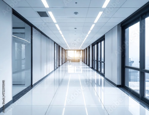 office, corridor, hallway, modern, bright, light, glasses, wall, window, architecture, interior, design, building, contemporary, clean, minimal, white, shiny, floor, ceiling, professional, corporate, business, workspace, empty, roomy, perspective, linear, geometric, line, structure, interior design, office space, modern architecture, business building, hall, passageway