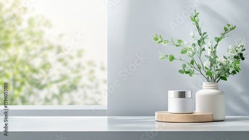 Bright morning skincare scene with fresh products and natural light streaming through a window.