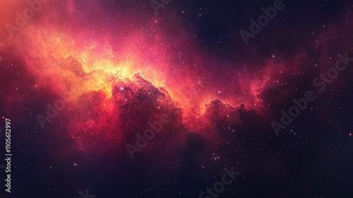 Bright nebula illuminated in red, pink and orange, surrounded by twinkling stars Space view background wallpaper AI generated image