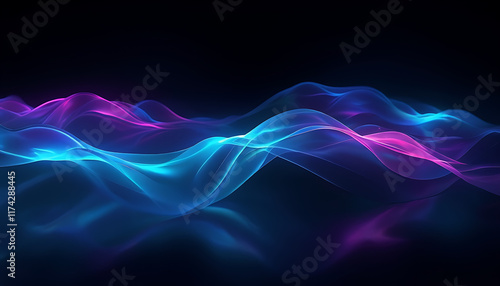 bright neon waves floating in darkness