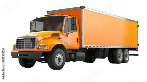 truck, box, cargo, delivery, freight, commercial, vehicle, transportation, logistic, shipping, haulage, moving, orange, heavy, duty, work, industrial, road, transport, trucking, van, trailer, container, storage, mover, courier, haul, isolated, transparent, background, cut-out, white, no, clean, studio