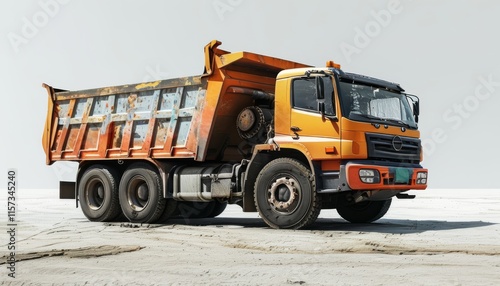 Bright Orange Dump Truck on a Solid Background with Unique Textures and Details