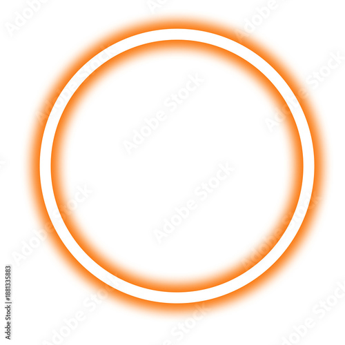 Bright orange neon ring circle isolated on white background, glowing circular frame for modern digital interface, UI elements, futuristic technology design, abstract luminous border graphic