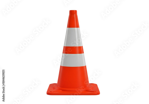 Bright orange traffic cone with white stripes for road safety