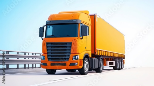 truck, vehicle, transportation, logistic, delivery, road, highway, warm tones, orange, cargo, shipping, freight, travel, professional, commerce, industry, modern, driving, motion, landscape, sunny, nature, sky, journey, wheel, engine, infrastructure, urban, design, power, speed, road safety, environment, commercial vehicle, movement