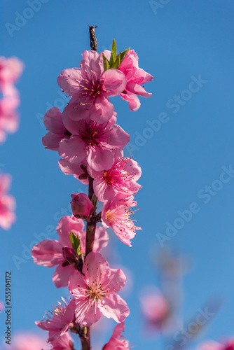 Bright Pink Peach Blossoms in Spring