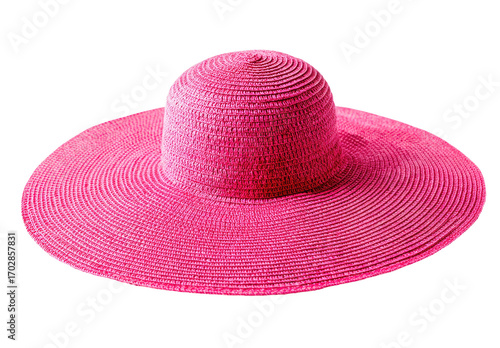 pink, straw, hat, sun, summer, wide, beach, vacation, fashion, accessory, headwear, protection, shade, style, bright, vibrant, colours, round, dome, top, texture, woven, natural, material, accessory, decoration, detail, isolated, simple, design, elegant, casual attire, holiday, gift, present, girlie, pretty, spring, hot, stylish, outfit