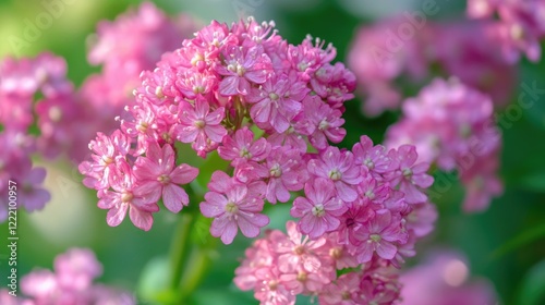 Bright pink summer flowers close-up with soft lighting, creating a warm, inviting atmosphere, ideal for nature, gardening, or seasonal visuals with floral themes