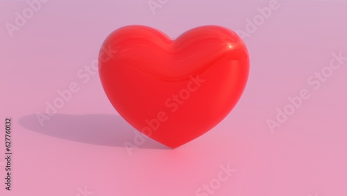 Bright Red 3D Love Heart Slowly Spins Above Vibrant Light Pink Floor - Abstract Background Texture