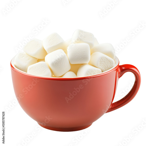 Bright red cup filled with fluffy marshmallows set against a soft background for a cozy, inviting winter vibe isolated on transparent background..