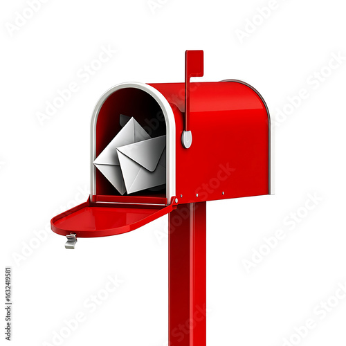 Bright Red Mailbox Filled with White Envelopes on a Clean White Background Delivering Important Messages and Communications