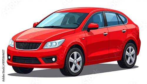 Bright red sedan car, with detailed shading, showing front, side, and roof angles, parked on a white background